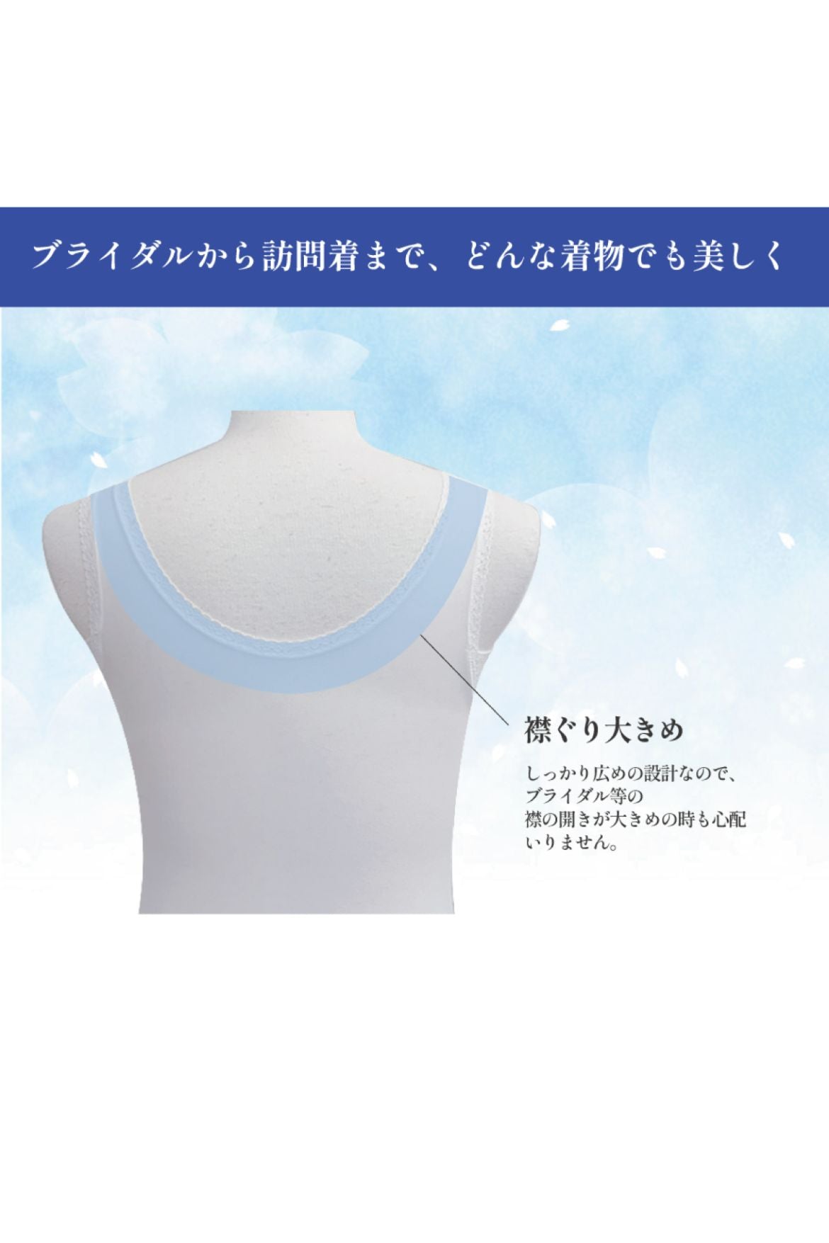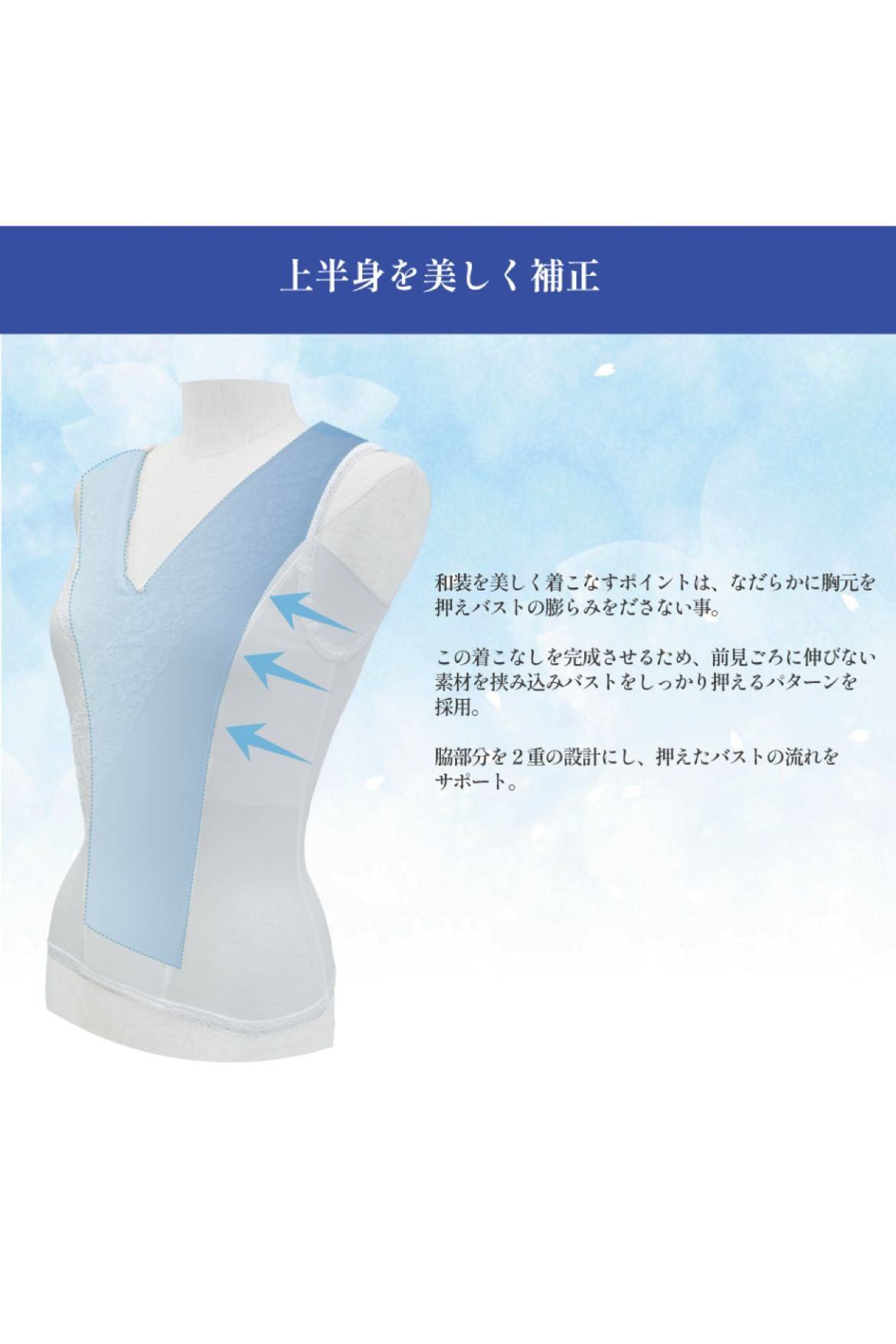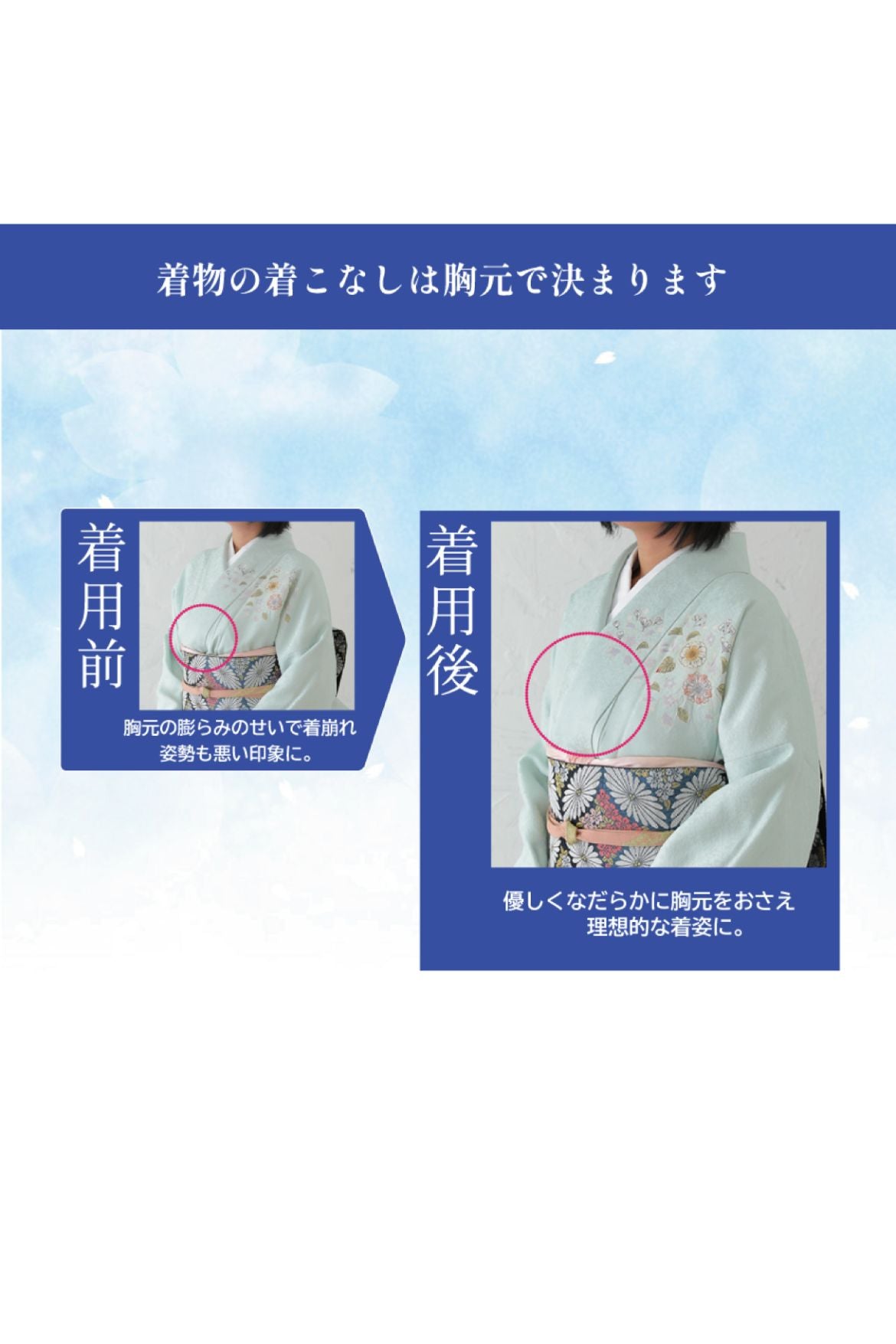おなかまでサポートするロングタイプで、着物向けのなだらかな丸みにバストメイク。