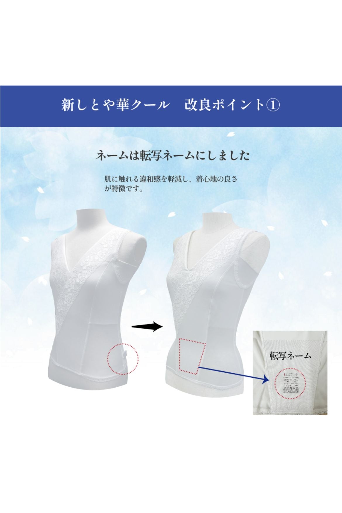 レース端が肌に触れない縫い付け方&ネームタグもなくチクチクしません♪